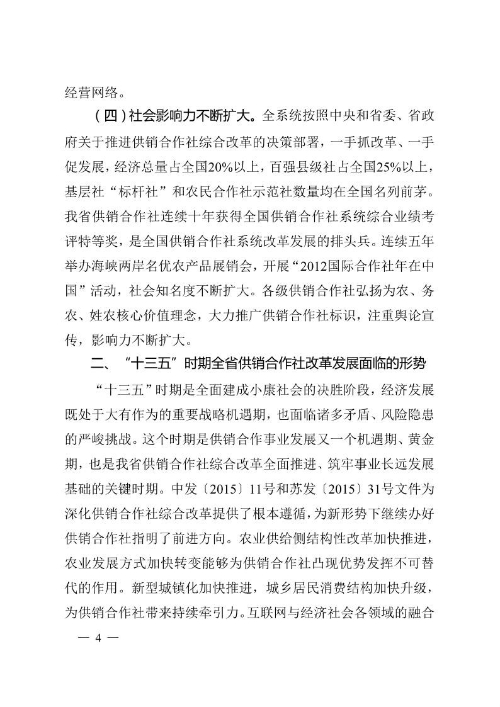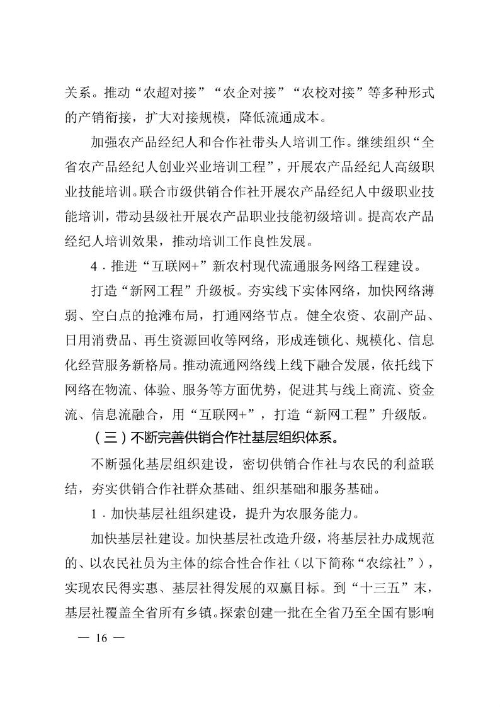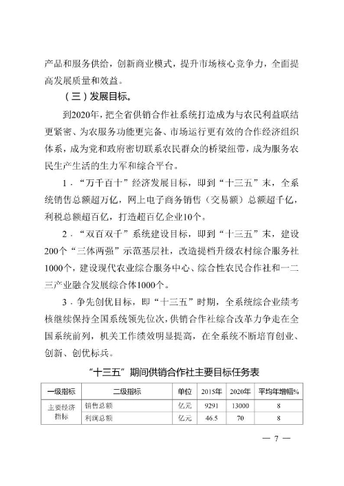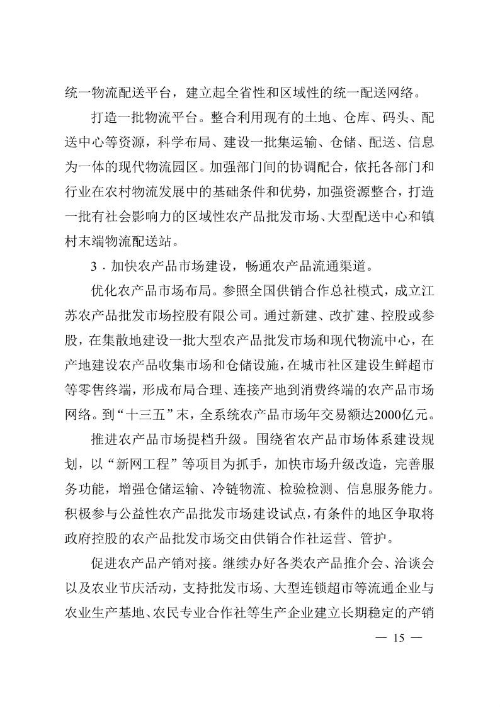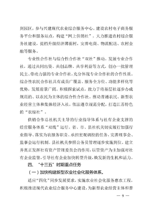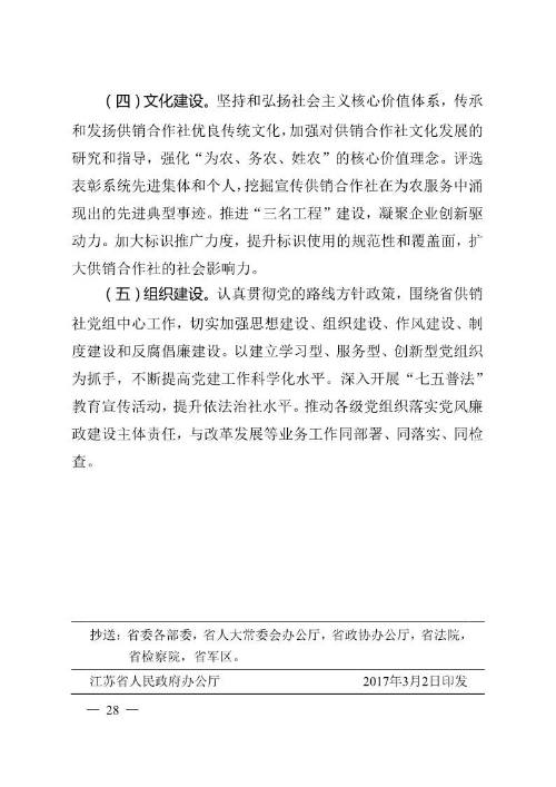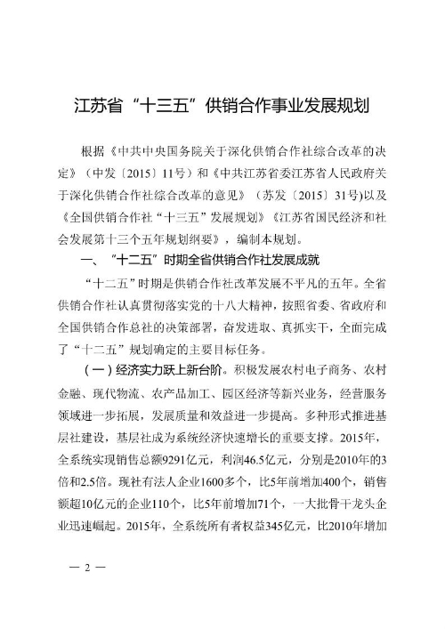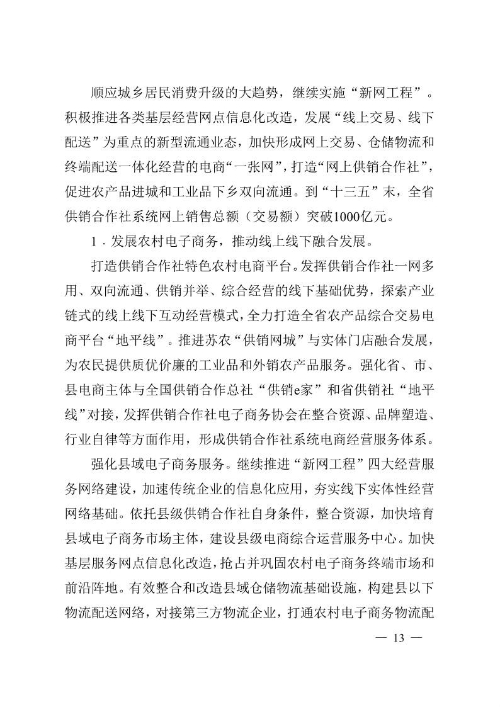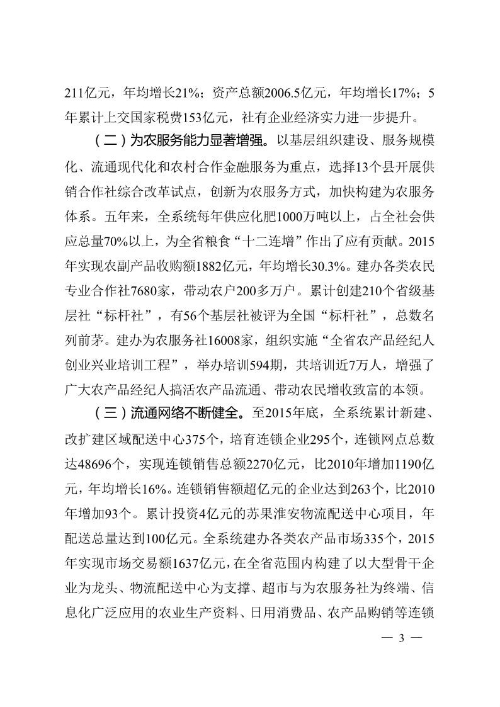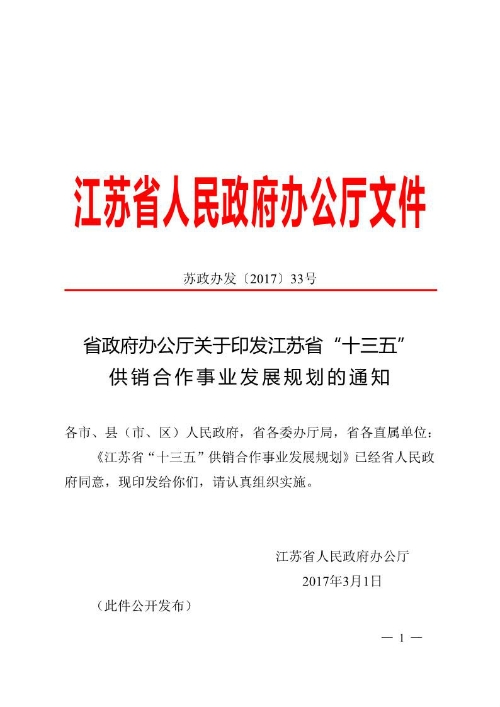 省政府办公厅印发江苏省“十三五”供销合作事业发展规划
